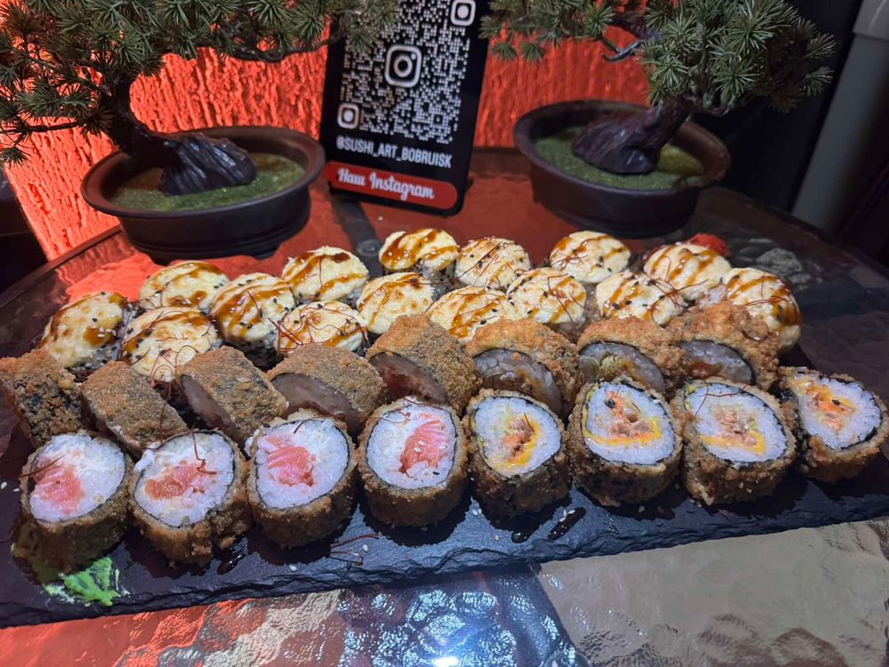 3. Ролл горячий: рис, Чеддер, лосось Терияки, салат Айсберг